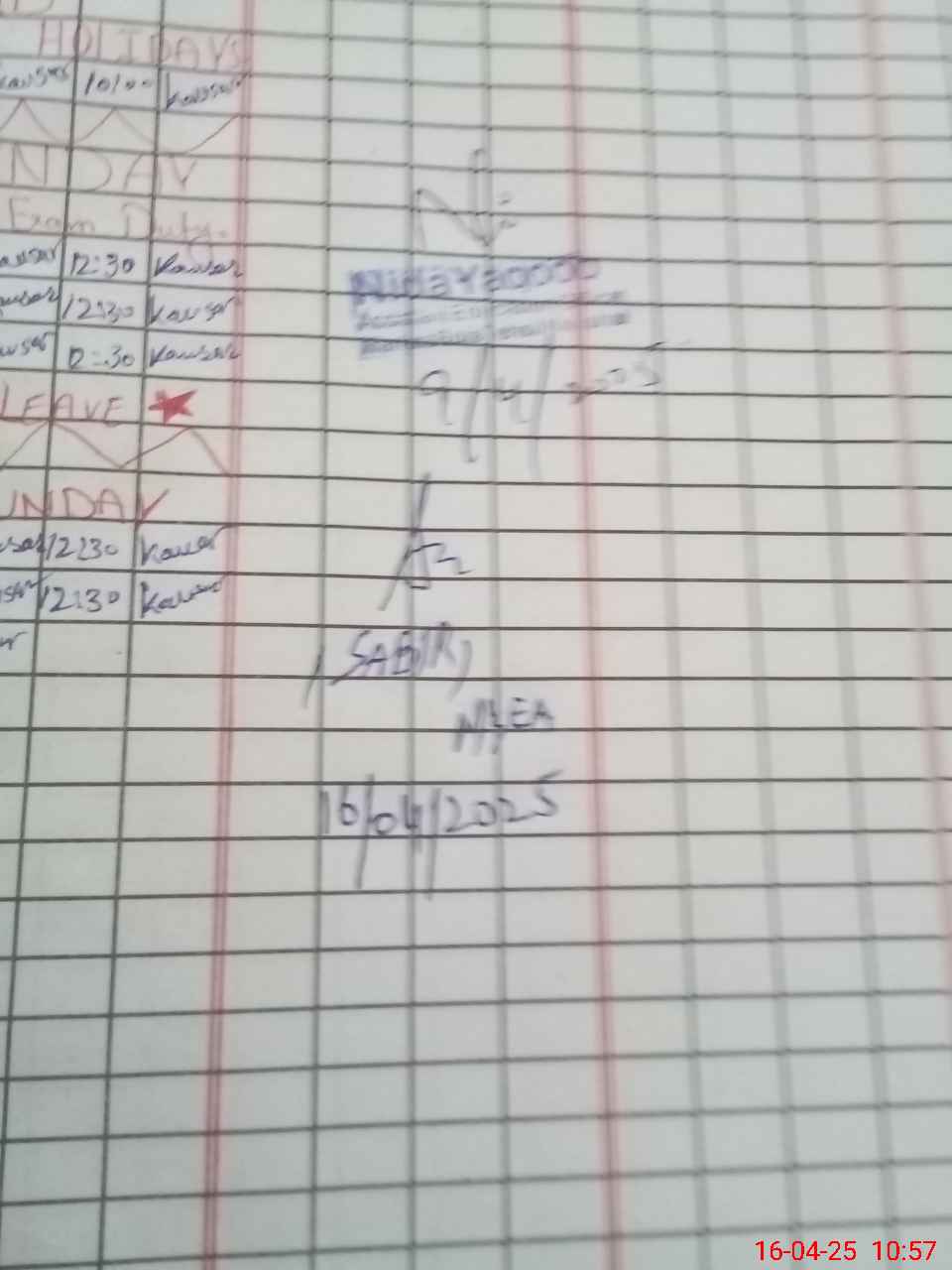 | Leave | Duty | Absent | Maternity | Medical | Ex- Pak |