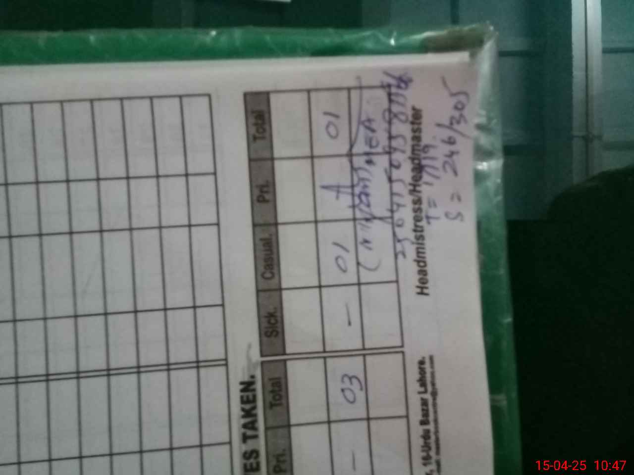 | Remarks (Use Separate Page if Required): Tenth class is in exam total students 43 and all are present Science lab is required on immediate basis | |||||