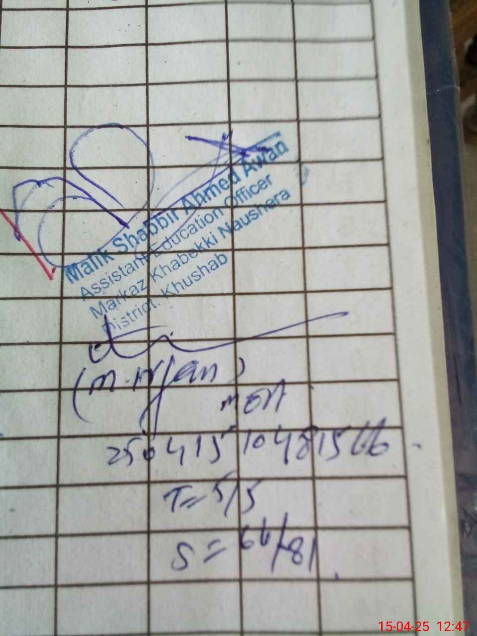 | District: KHUSHAB | Tehsil: NAUSHERA | Markaz: KHABAKI (MALE) | Level: Primary | |