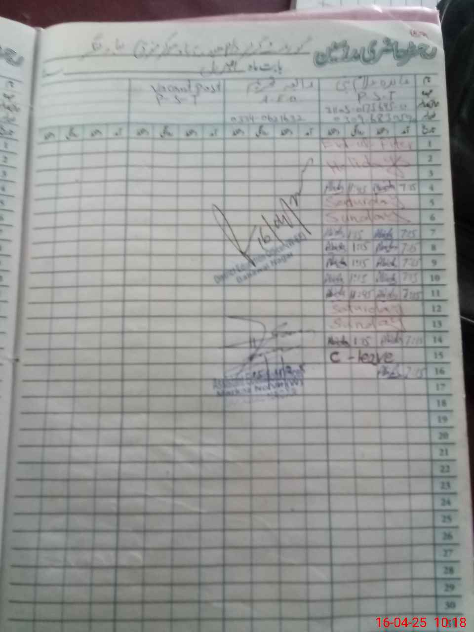 | Name: Ab**** GNa**** Designation: (School Headmaster's/Headmistress's) PST Phone/Cell Number: 03**** |