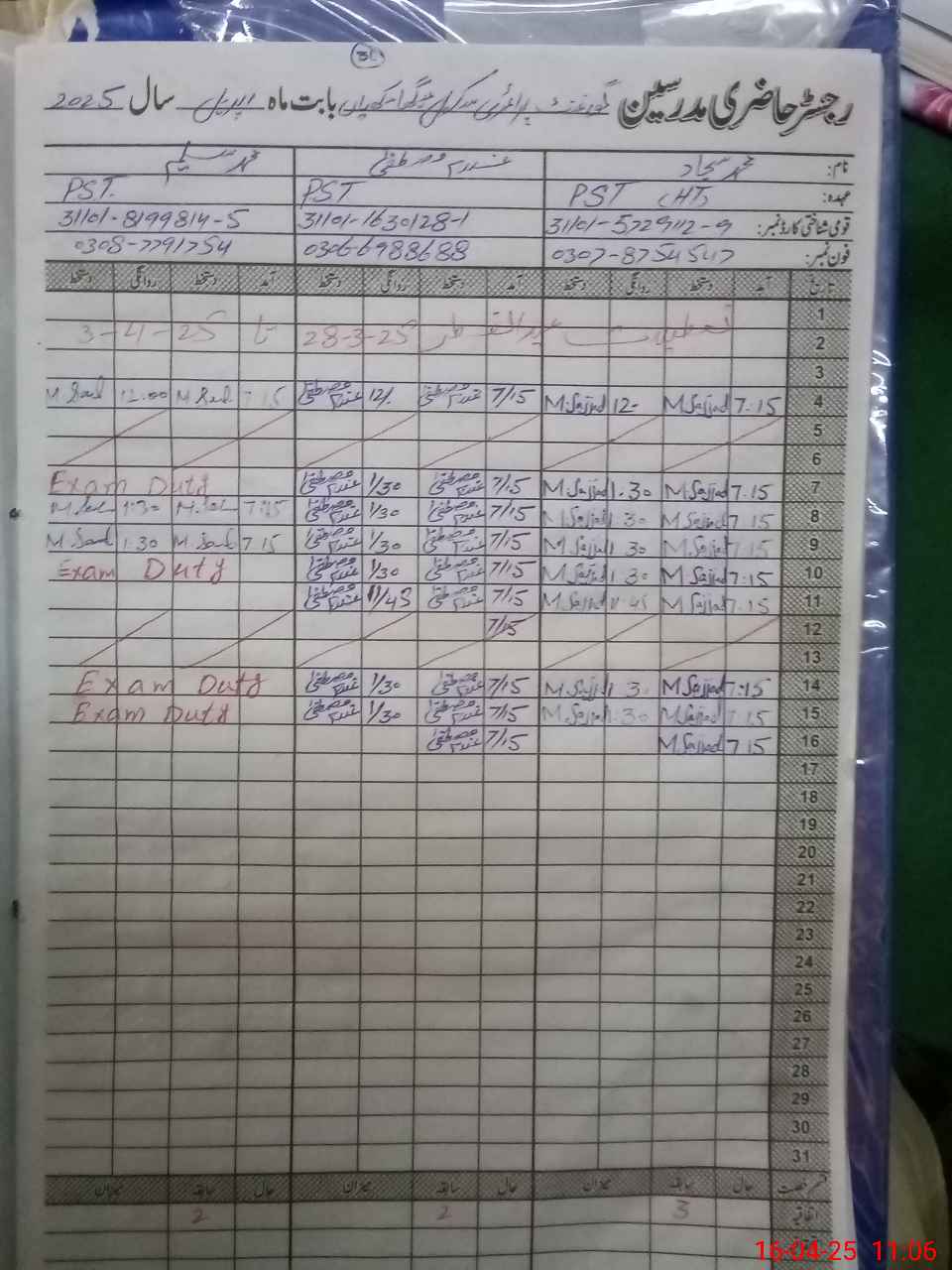 | 31**** | Mu**** Sa**** | PST | Regular | 0 | 0 | 0 | 0 | 0 | 0 | 0 | 0 | 0 | Exam Duty |
