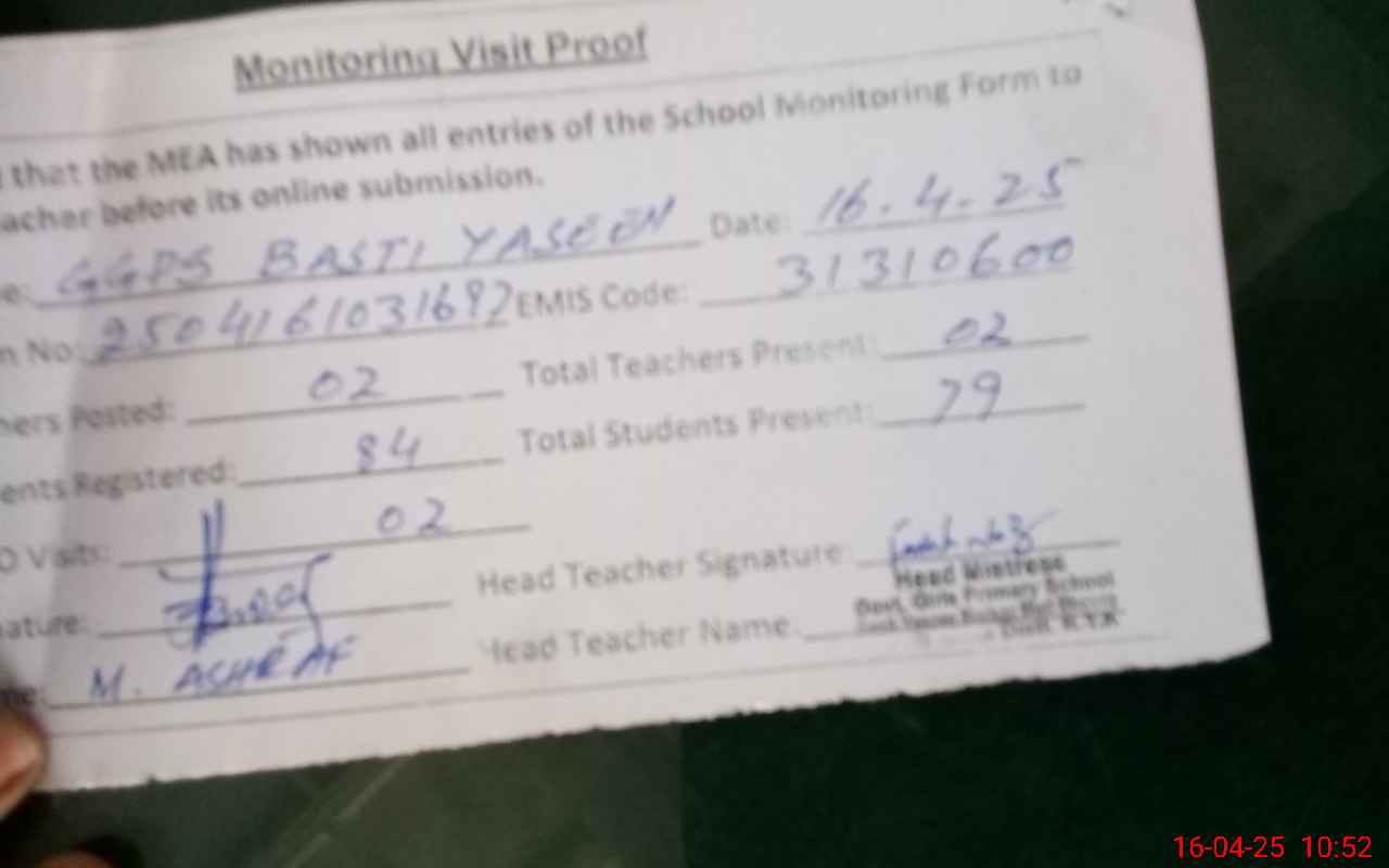 | EMIS Code: 31310600 | Name of School: GGPS BASTI YASEEN | |||
