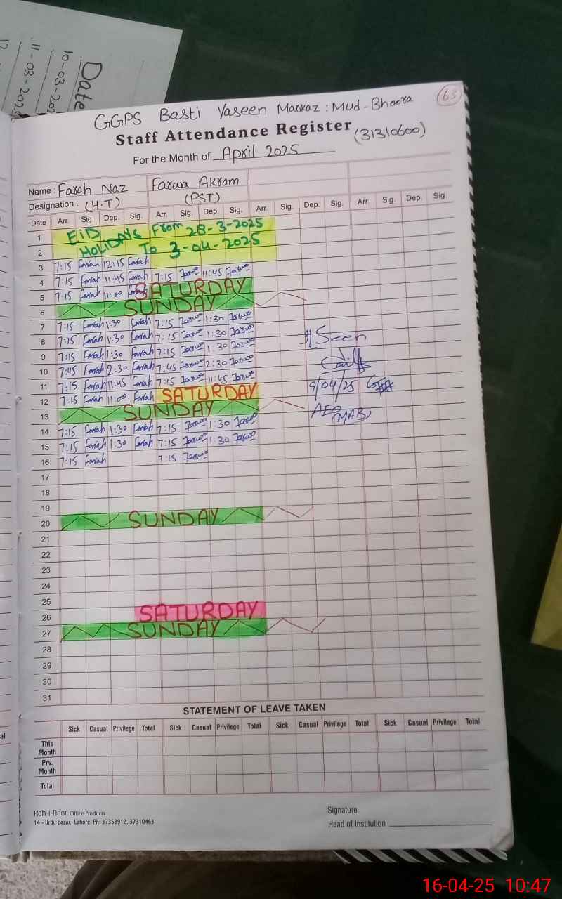| Name: Fa**** Na**** Designation: (School Headmaster's/Headmistress's) PST Phone/Cell Number: 03**** |