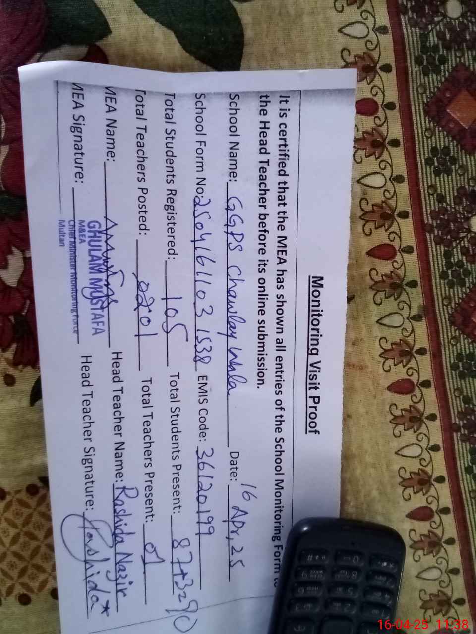 | EMIS Code: 36120199 | Name of School: GGPS CHALAY WALA SHUJABAD DISTT. MULTAN | |||