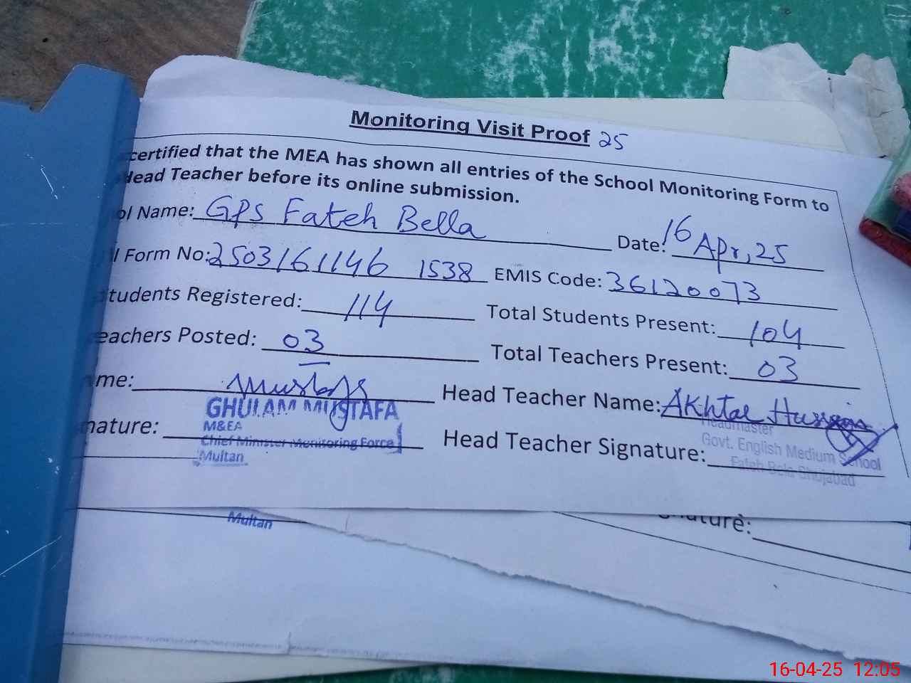 | EMIS Code: 36120073 | Name of School: GPS FATEH BELLA P/O & TEH.SHUJABAD | |||
