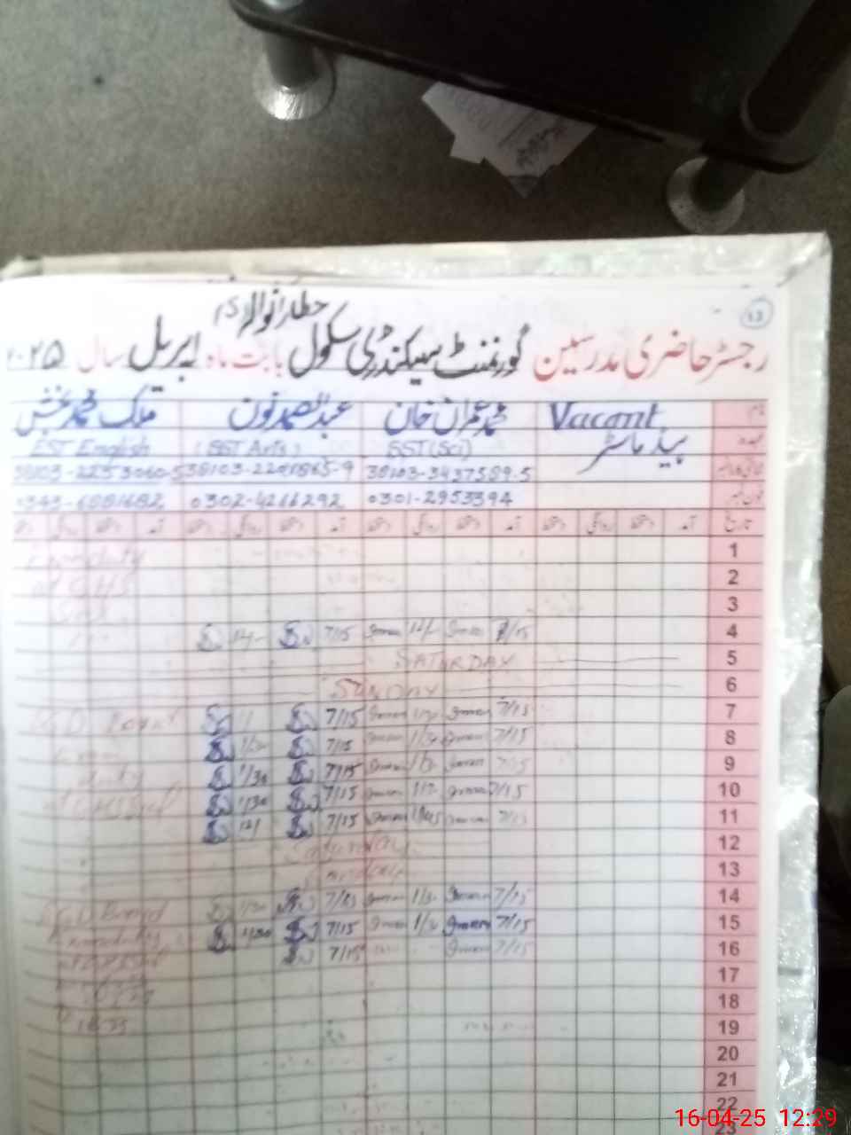 | Name: Ab**** Hu**** Designation: (School Headmaster's/Headmistress's) Headmaster Phone/Cell Number: 03**** |
