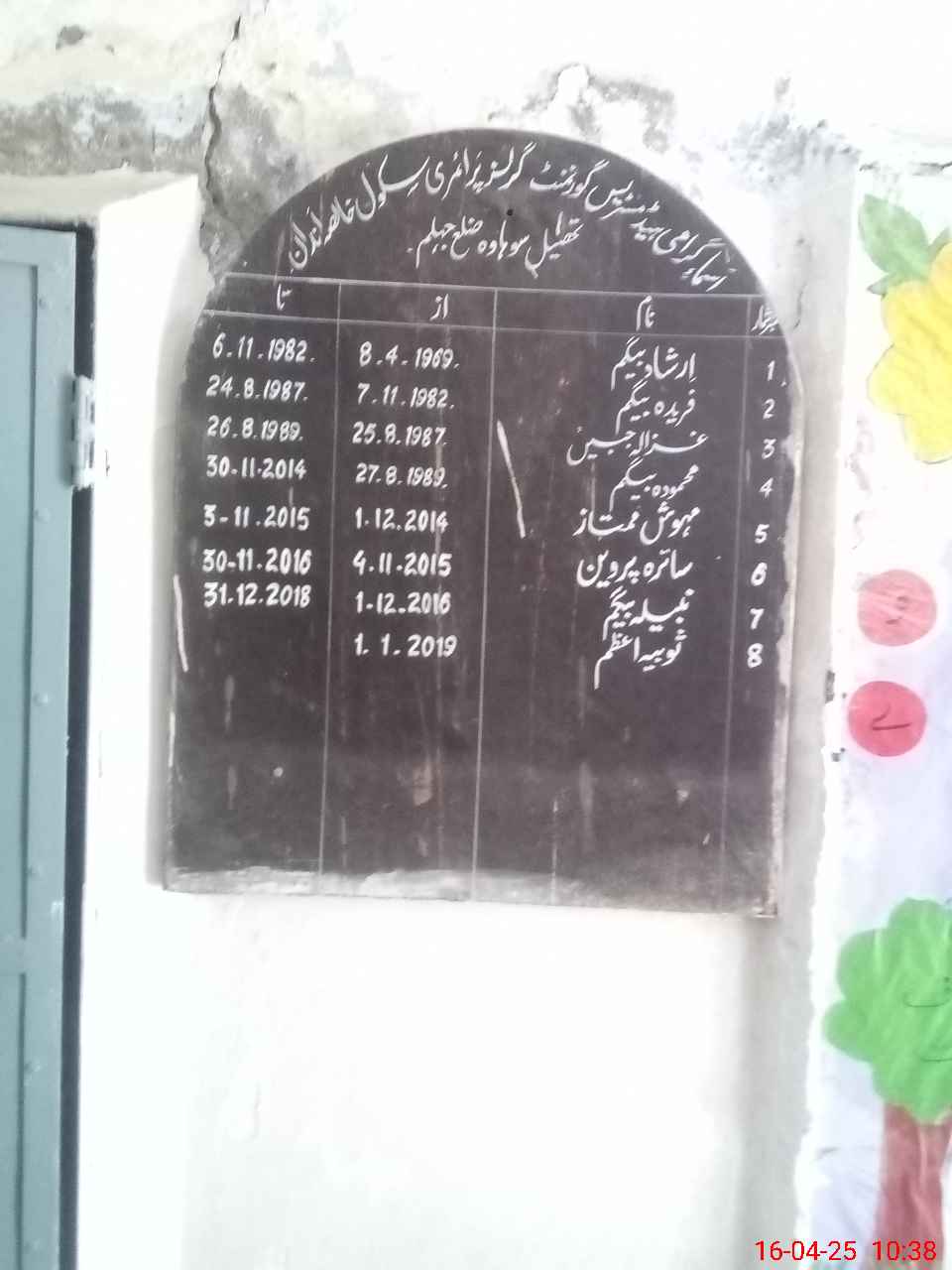 | District: JHELUM | Tehsil: SOHAWA | Markaz: SOHAWA-FEMALE | Level: Primary | |