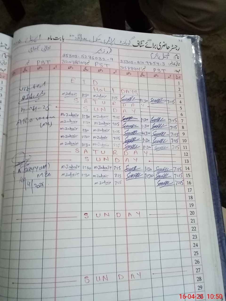 | CNIC | Full Name | Designation | R/C | Absence During Last Calender Month |