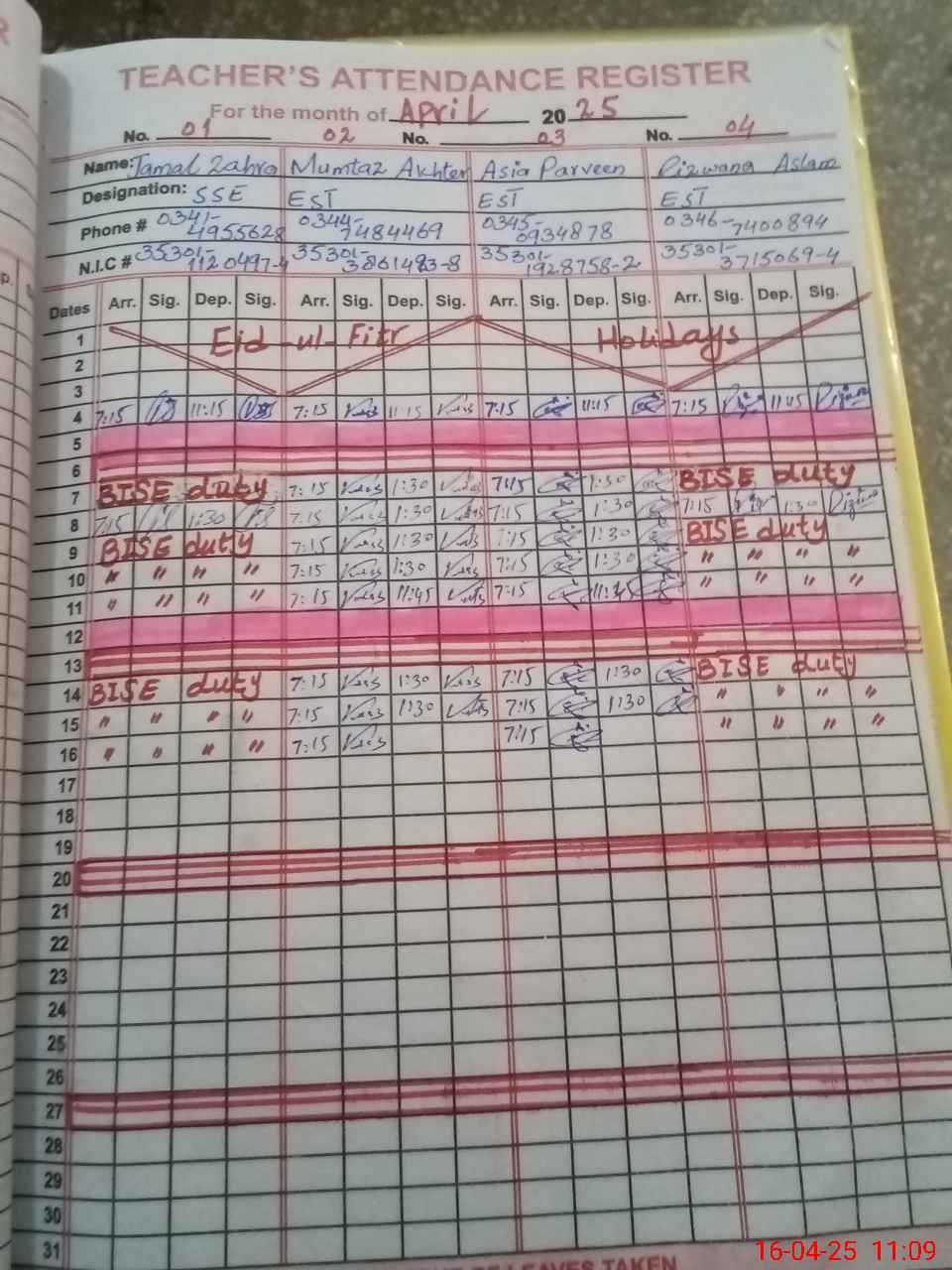 | 35**** | Ay**** Sh**** | EST | Regular | 0 | 0 | 0 | 0 | 0 | 0 | 0 | 0 | 0 | Exam Duty |