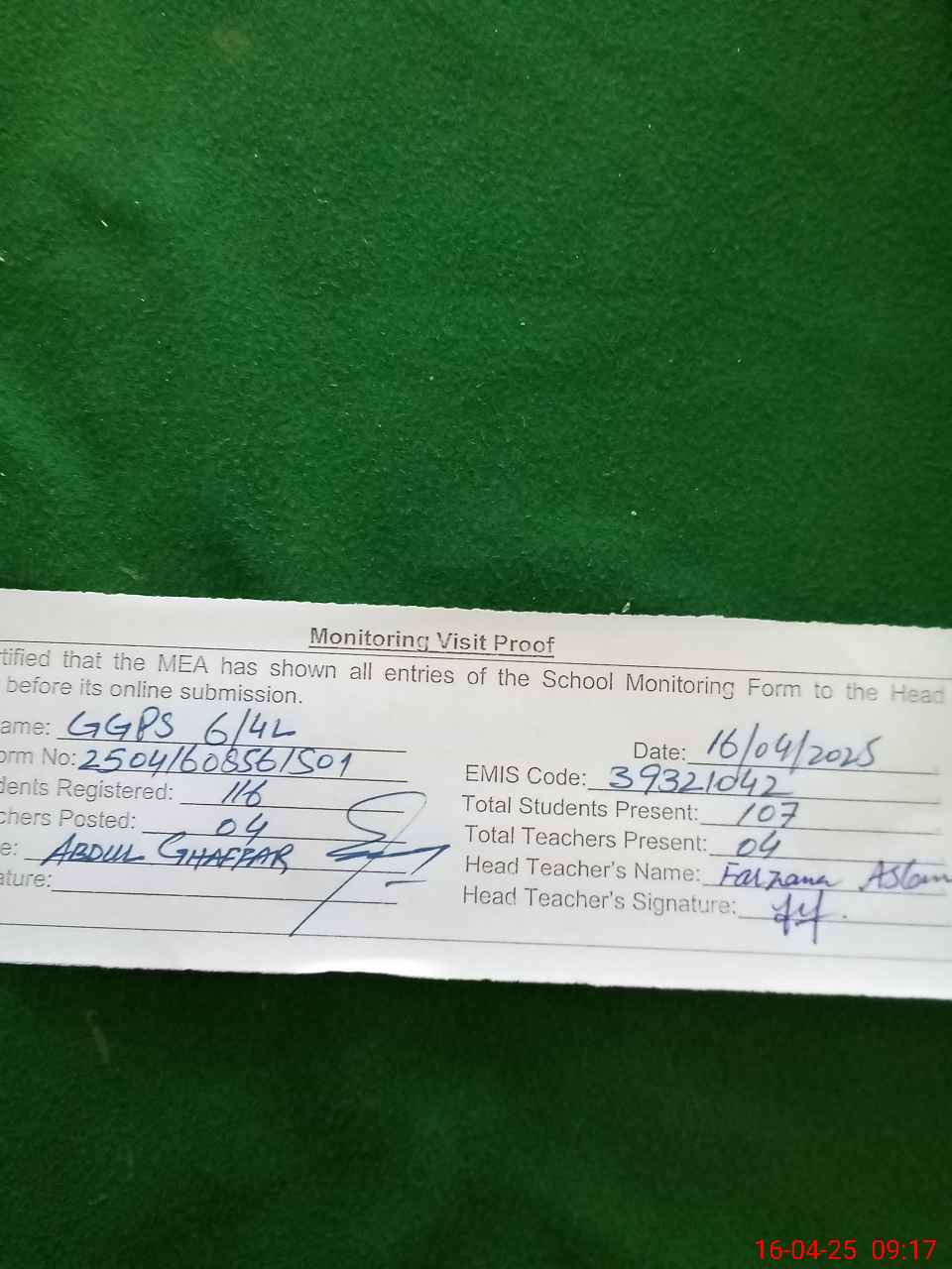 | EMIS Code: 39321042 | Name of School: GGPS 6/4-L | |||