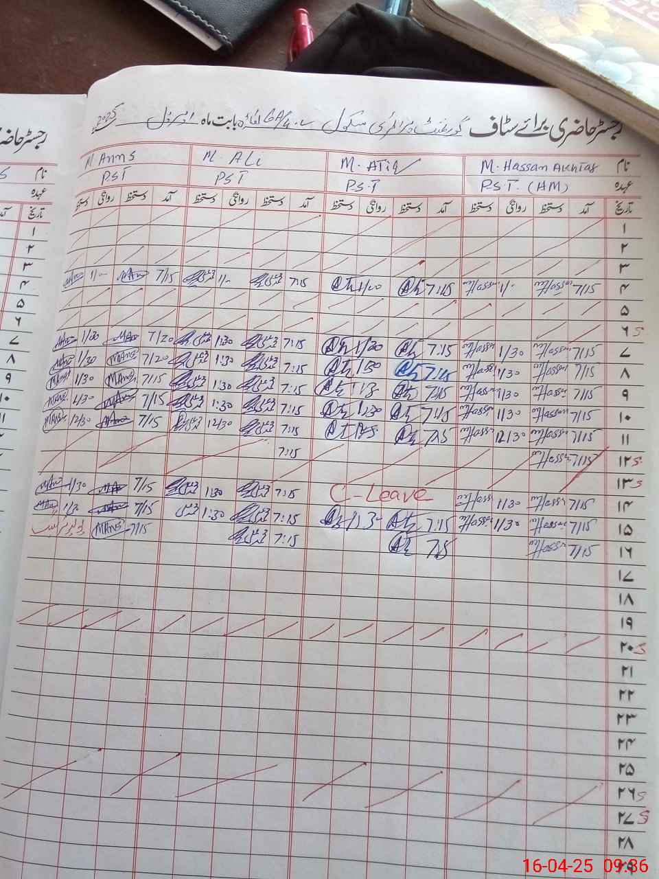 | Leave | Duty | Absent | Maternity | Medical | Ex- Pak |