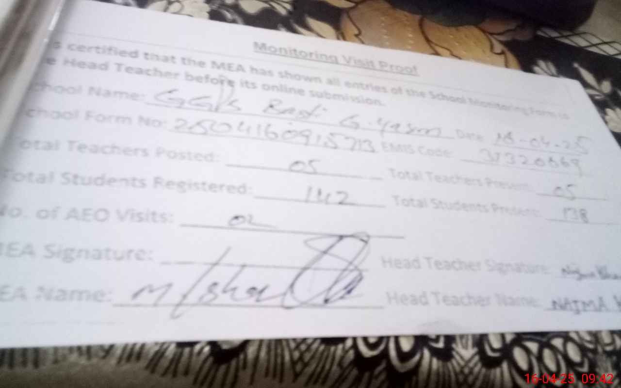 | EMIS Code: 31320669 | Name of School: GGPS BASTI GHULAM YASEEN | |||