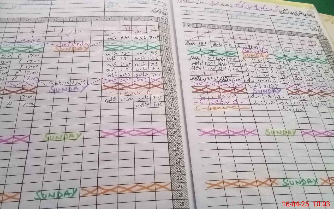 | CNIC | Full Name | Designation | R/C | Absence During Last Calender Month |