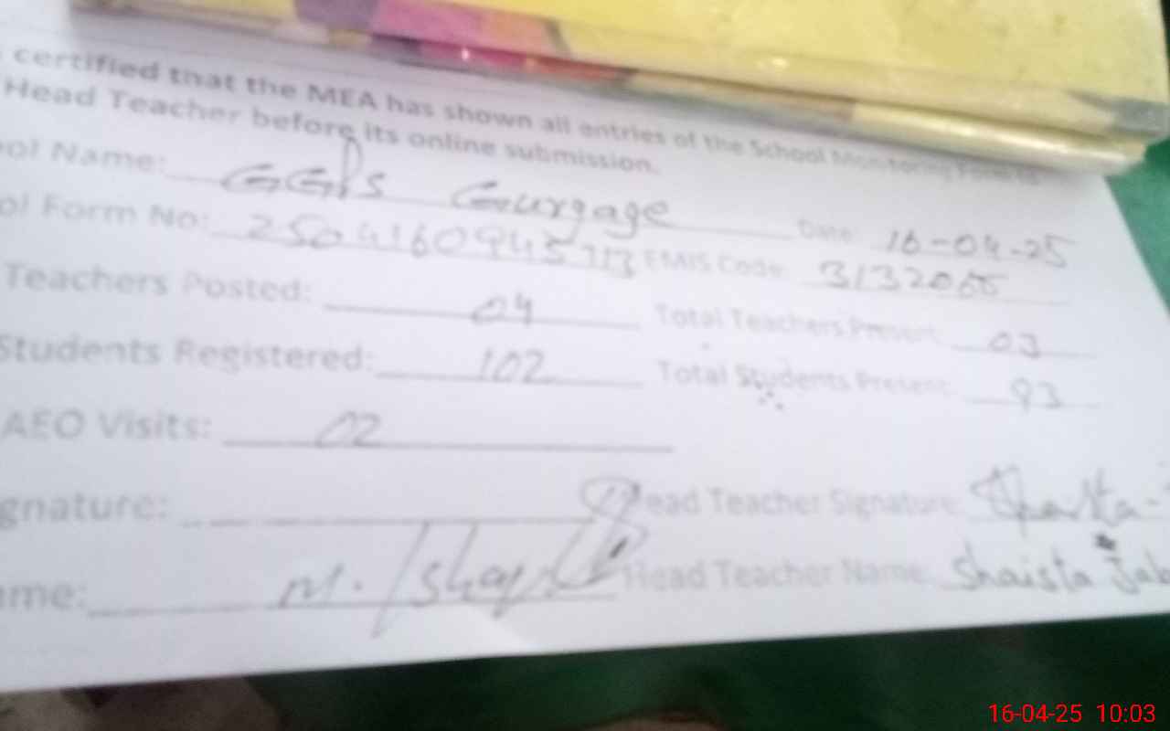 | EMIS Code: 31320675 | Name of School: GGPS TARNDA GOUR GAIJ | |||