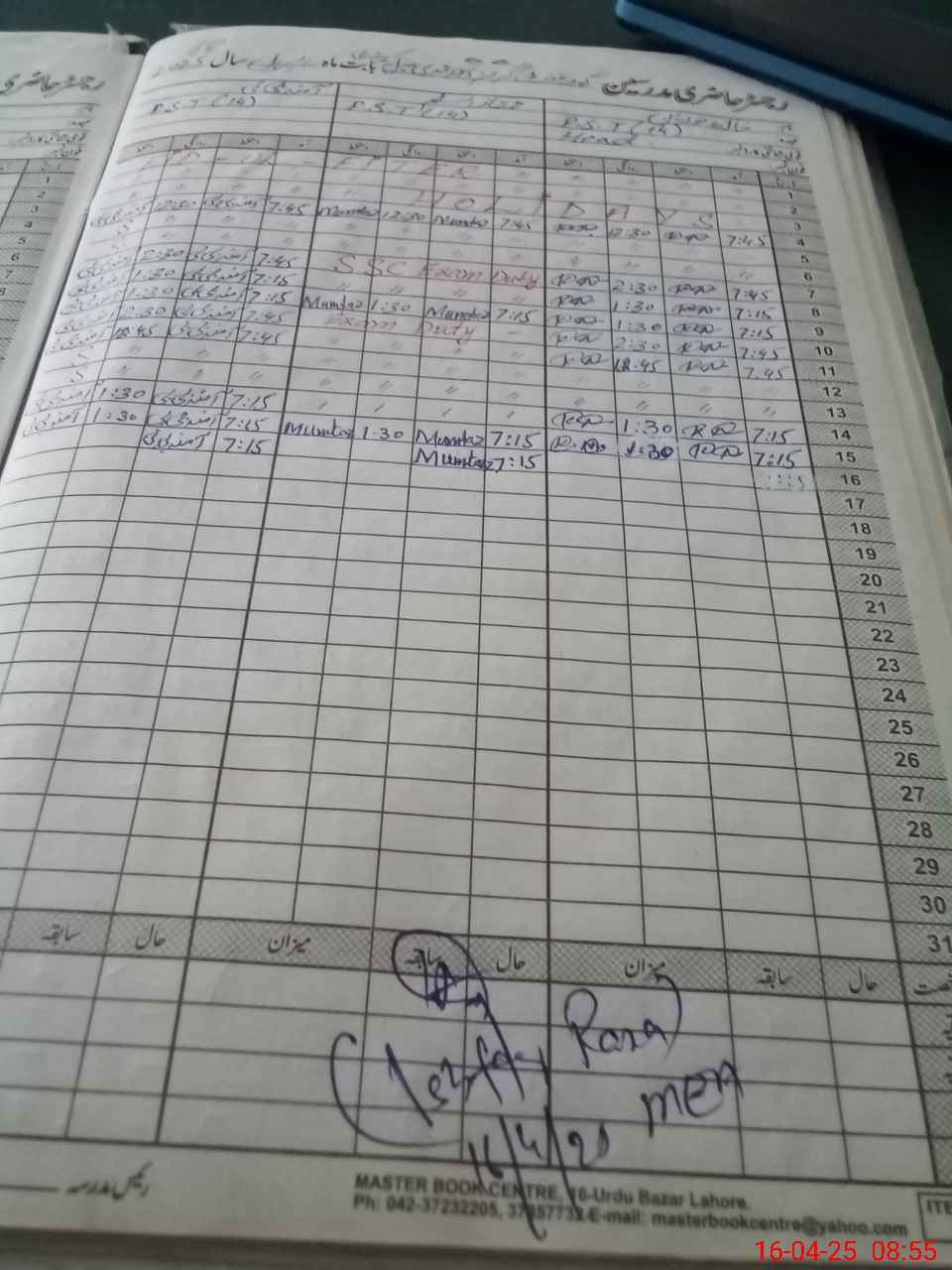 | CNIC | Full Name | Designation | R/C | Absence During Last Calender Month |