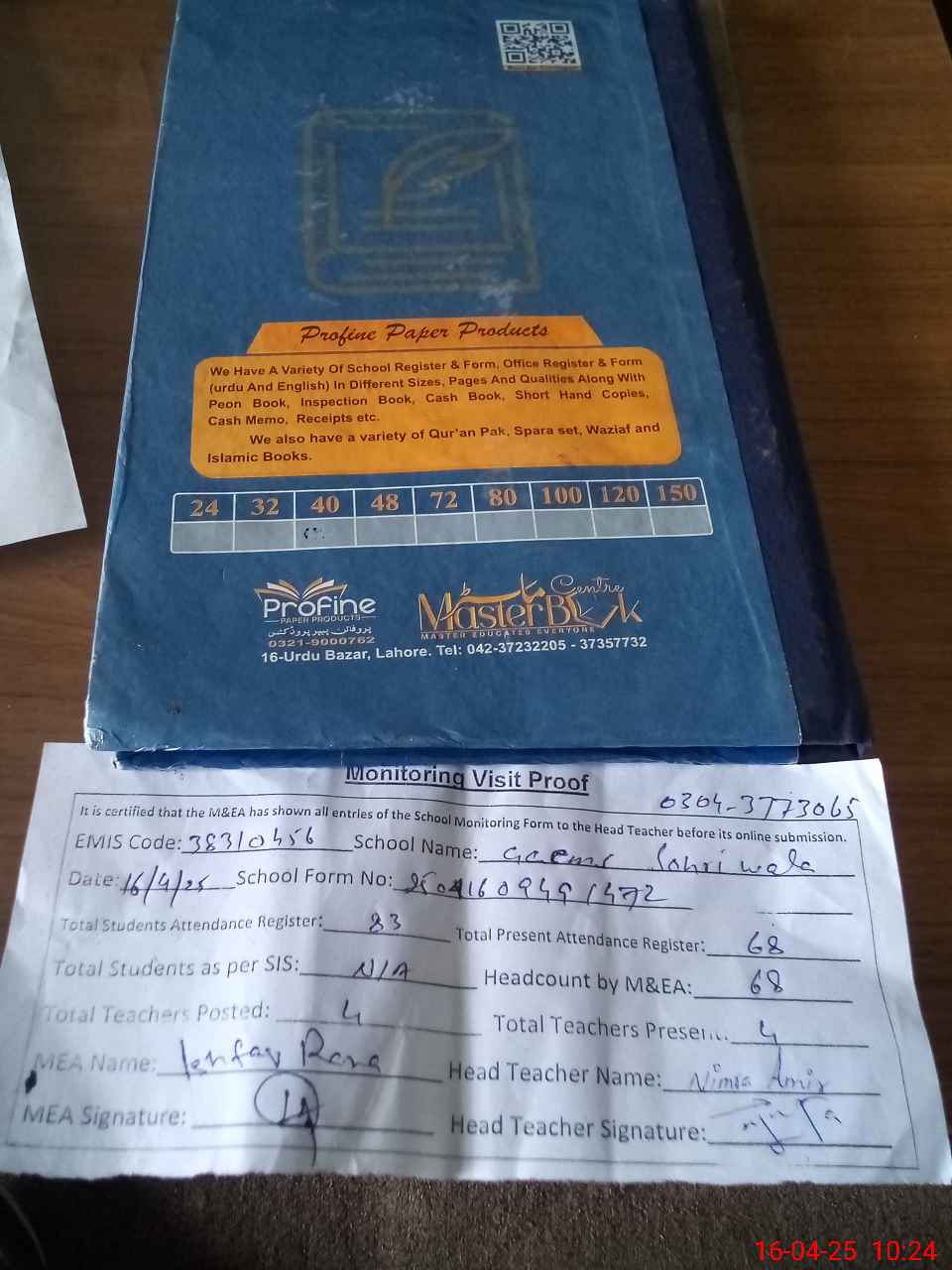 | EMIS Code: 38310457 | Name of School: GGCMS SOHRI WALA | |||