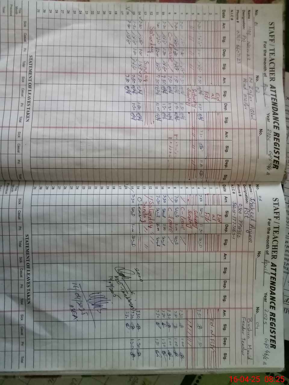 | Name: MU**** ZA**** IQ**** Designation: (School Headmaster's/Headmistress's) PST Phone/Cell Number: 03**** |