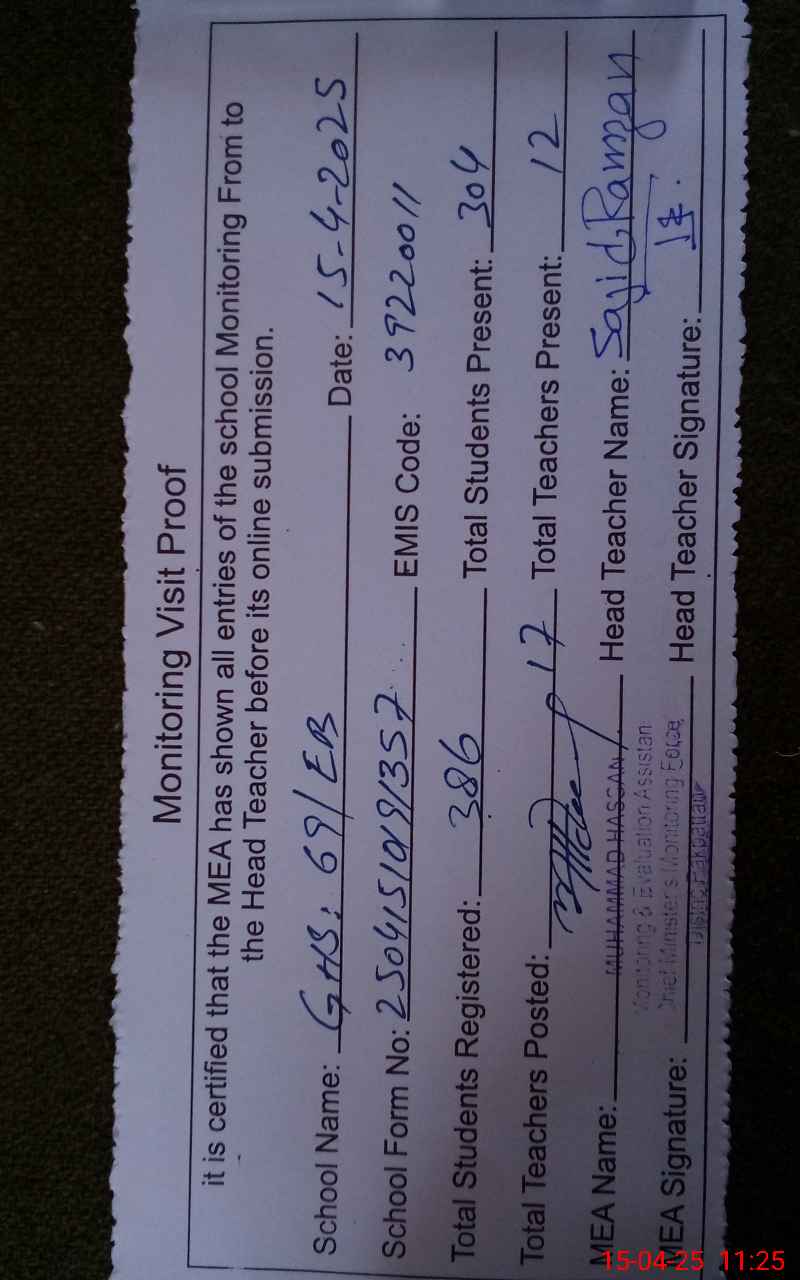 | EMIS Code: 39220011 | Name of School: GHS 69/EB ARIF WALA | |||