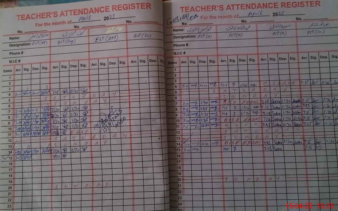 | Name: AB**** AL**** Designation: (School Headmaster's/Headmistress's) SNR H M Phone/Cell Number: 03**** |