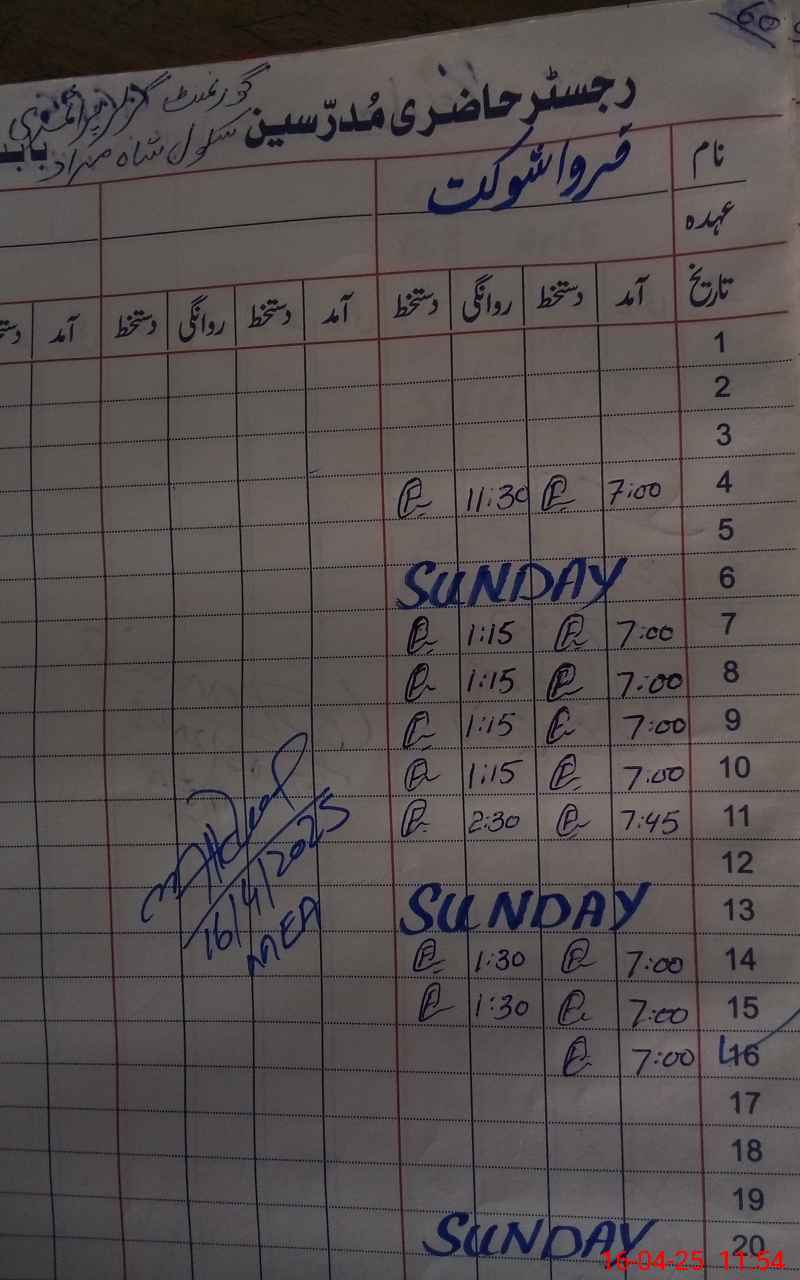 | Name: FA**** SH**** Designation: (School Headmaster's/Headmistress's) PST Phone/Cell Number: 03**** |