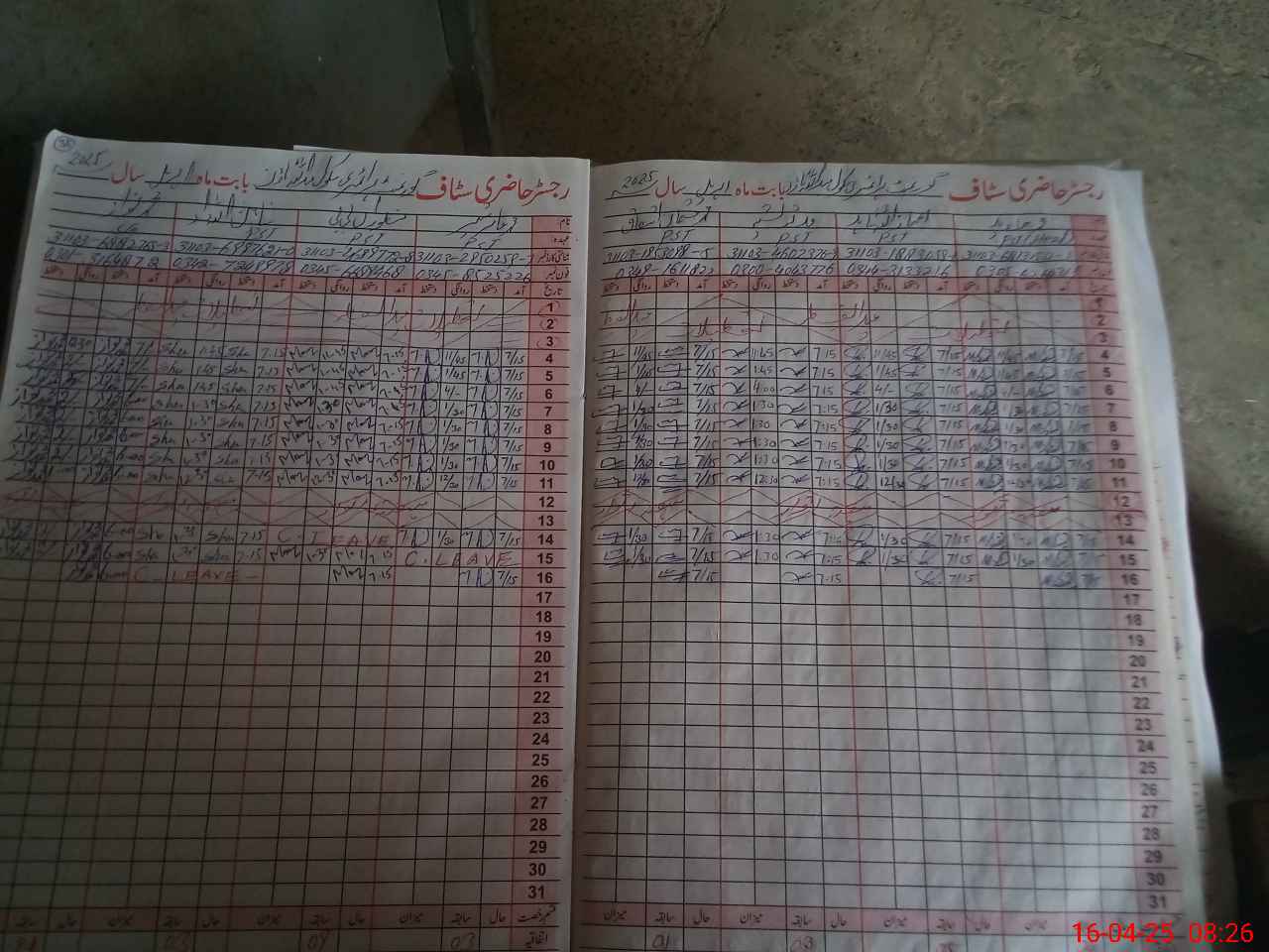 | CNIC | Full Name | Designation | R/C | Absence During Last Calender Month |