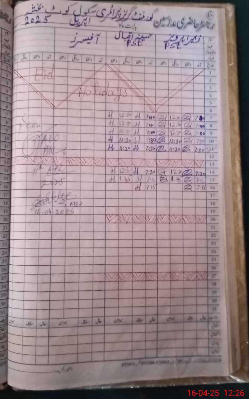| Attendance Register | Head Teacher | MEA with School | Visit Proof |