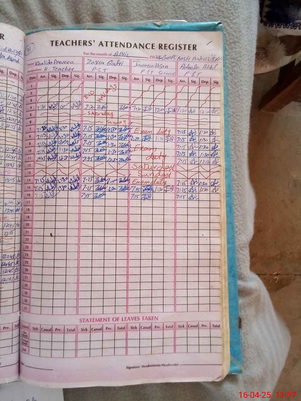 | Name: KH**** PA**** Designation: (School Headmaster's/Headmistress's) PST Phone/Cell Number: 03**** |