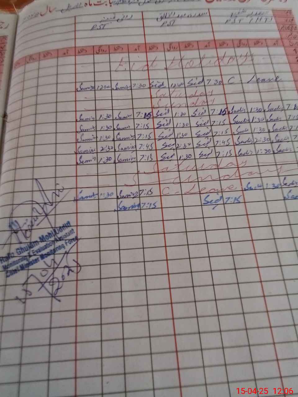 | CNIC | Full Name | Designation | R/C | Absence During Last Calender Month |