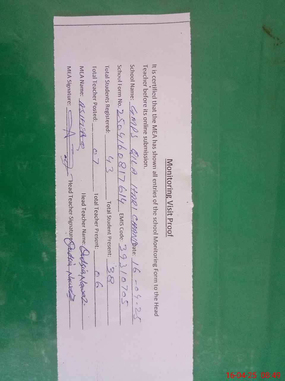 | EMIS Code: 39310705 | Name of School: GMPS QILA HARRI CHAND | |||