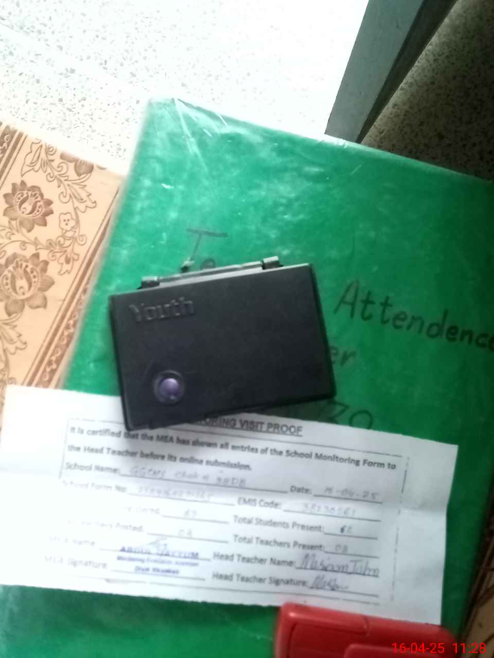 | Attendance Register | Head Teacher | MEA with School | Visit Proof |