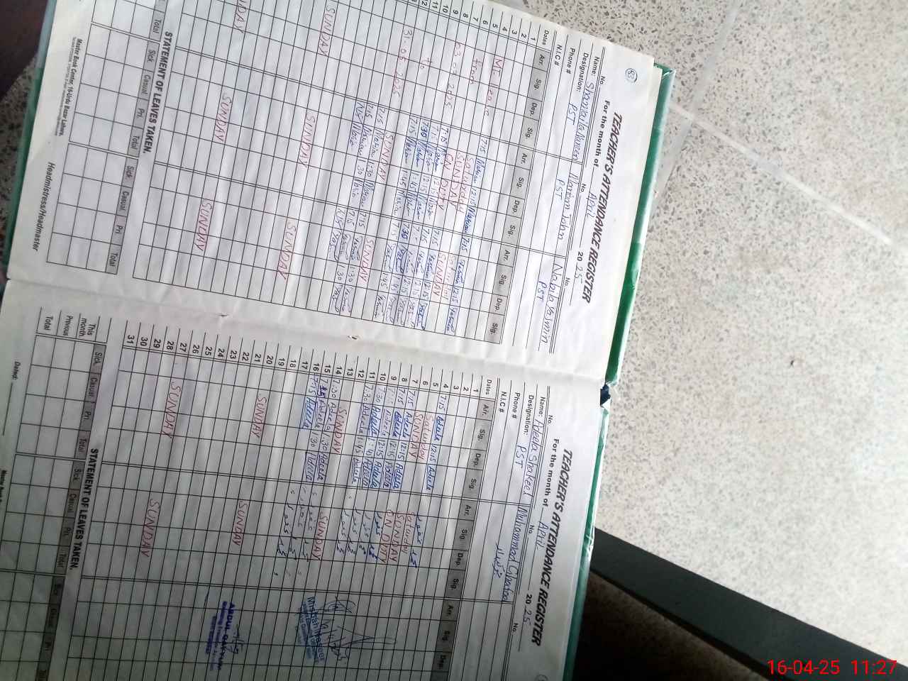 | CNIC | Full Name | Designation | R/C | Absence During Last Calender Month |