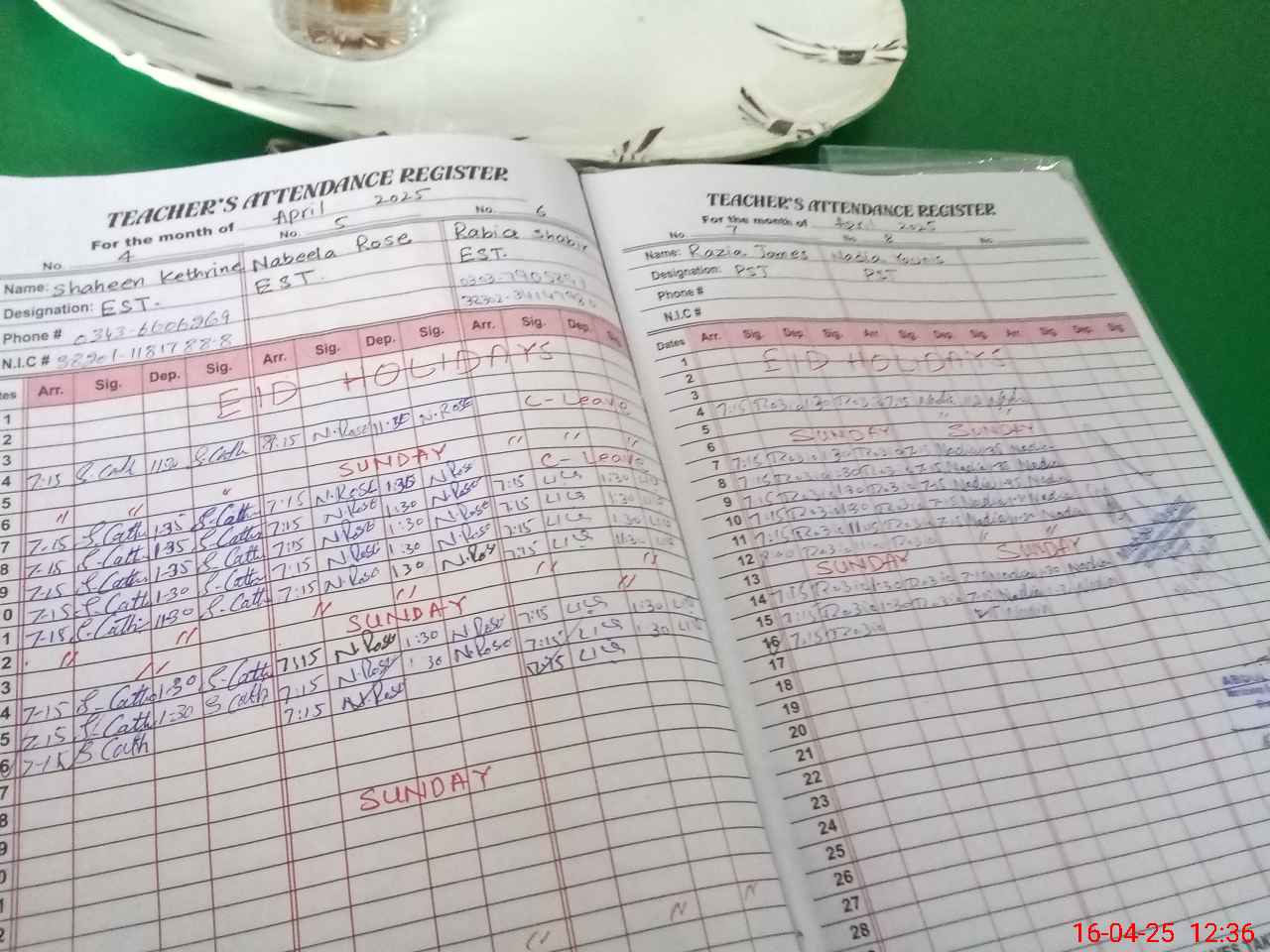 | CNIC | Full Name | Designation | R/C | Absence During Last Calender Month |
