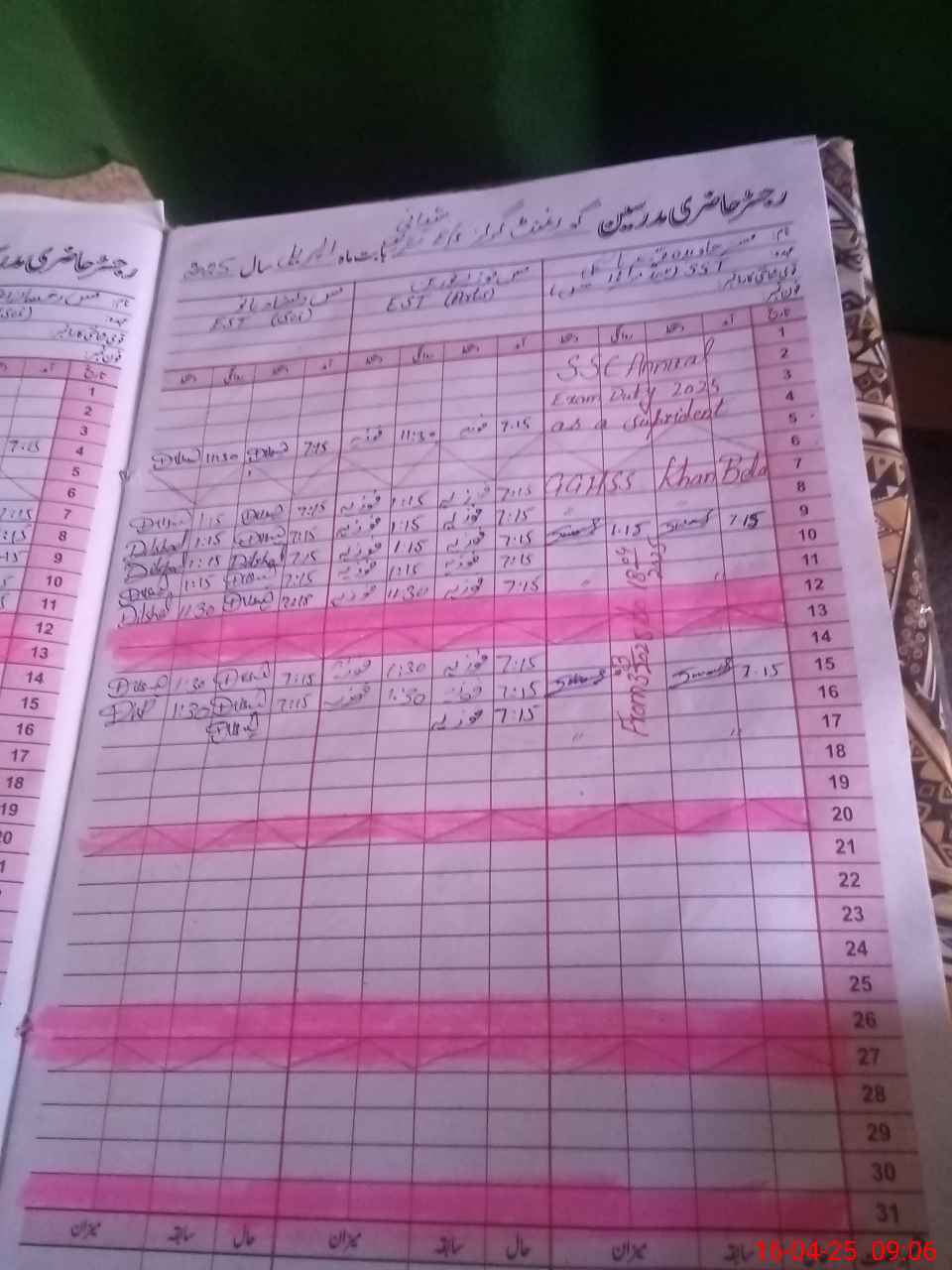 | 31**** | Ja**** Wa**** Ha**** | Regular | 0 | 26 | 0 | 0 | 0 | 0 | 0 | 0 | 0 | Exam Duty | |
