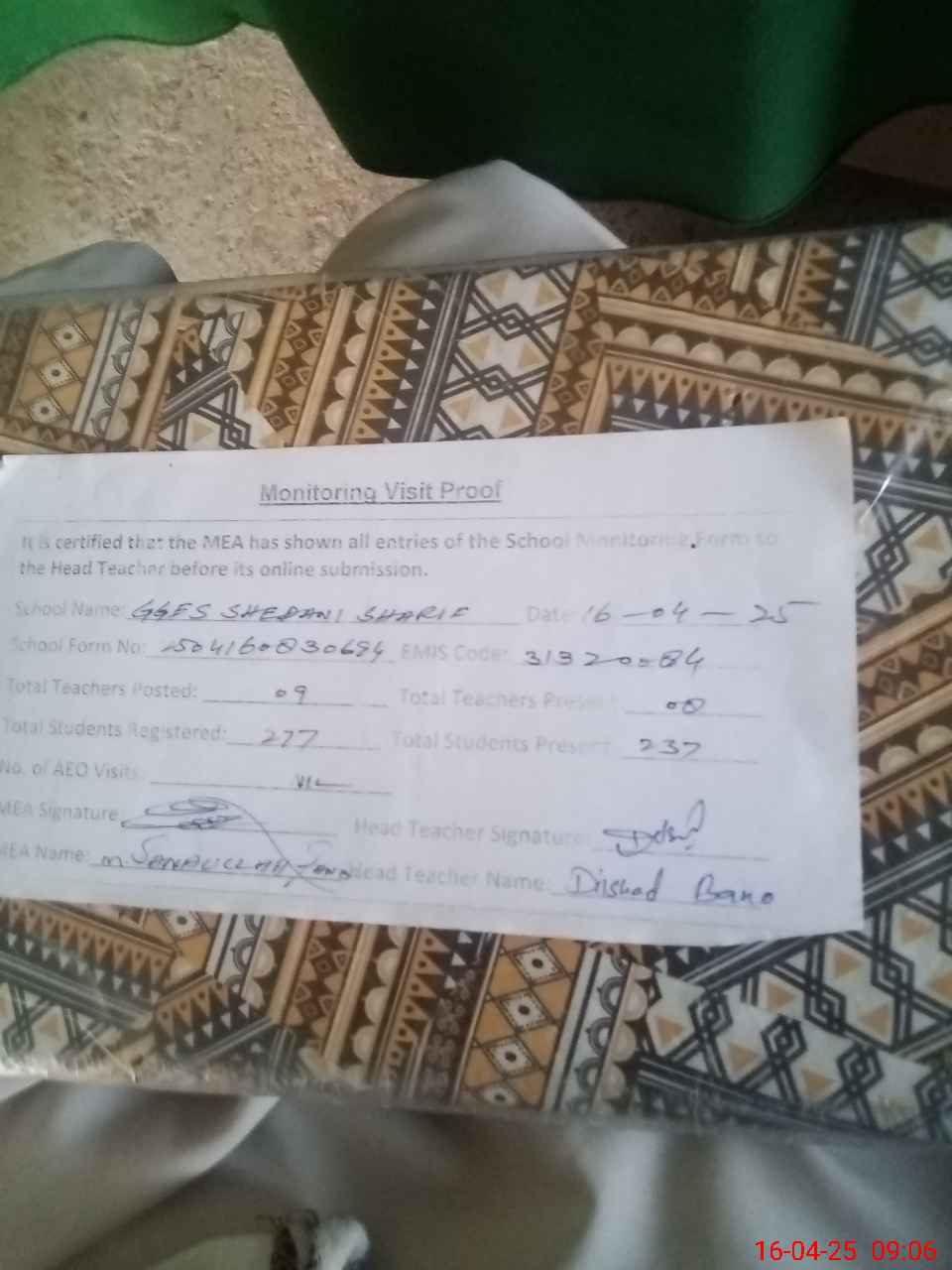 | EMIS Code: 31320084 | Name of School: GGES SHEDANI SHARIF | |||