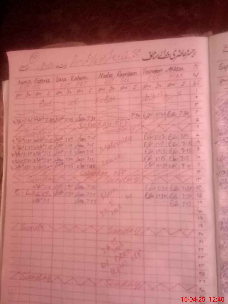 | Leave | Duty | Absent | Maternity | Medical | Ex- Pak |