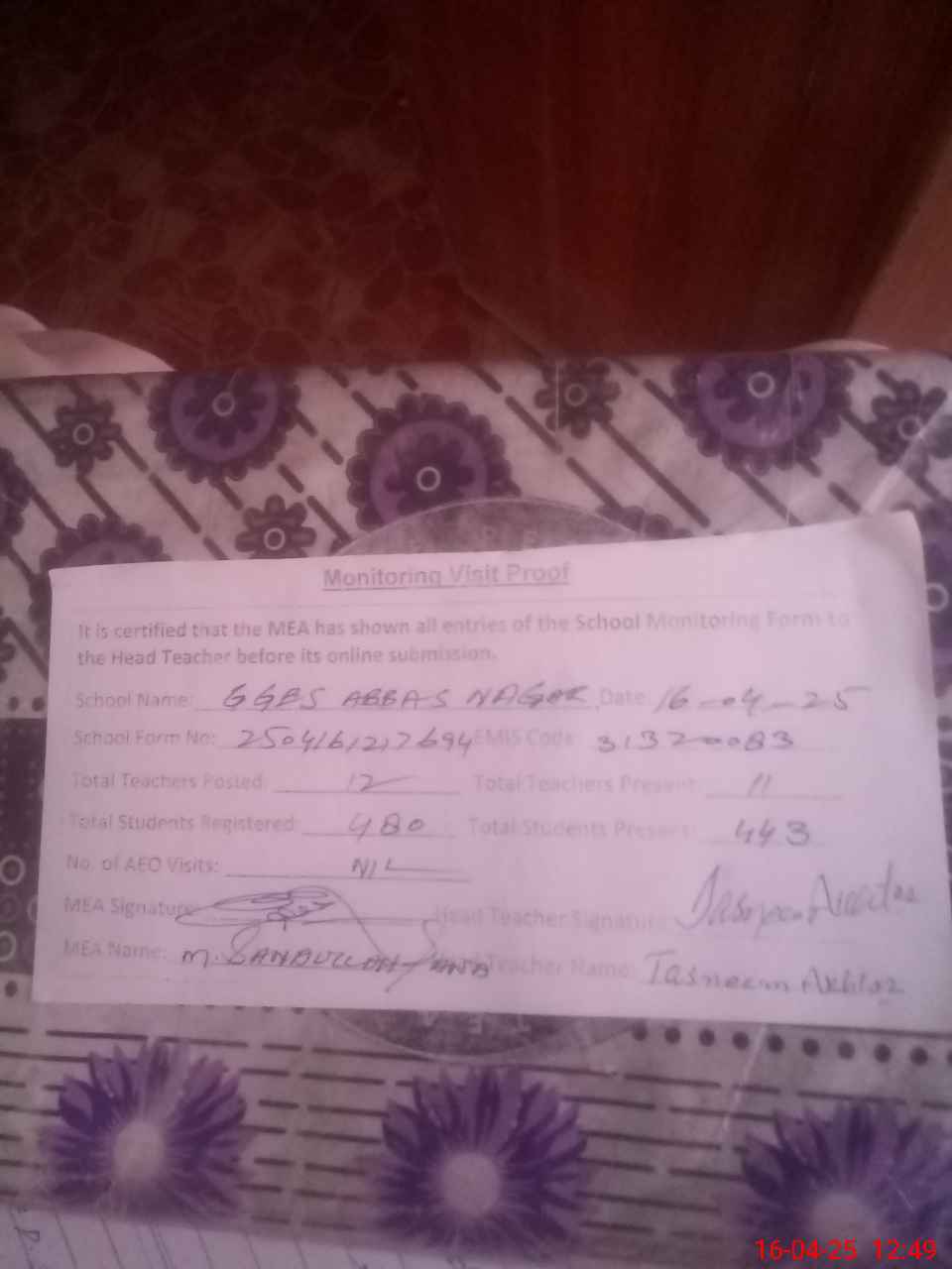 | EMIS Code: 31320083 | Name of School: GGES ABBAS NAGAR | |||