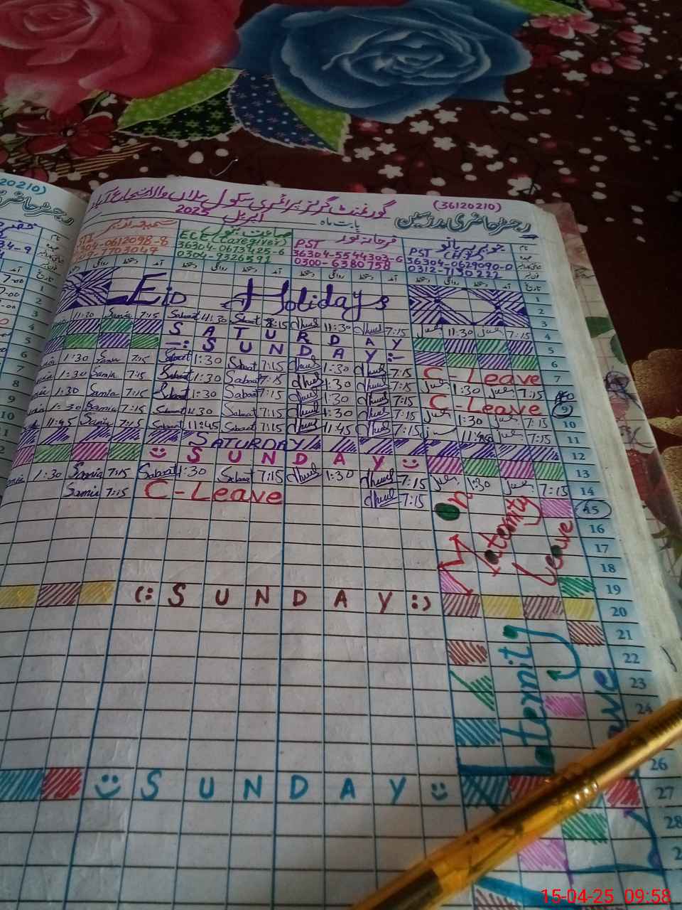 | Leave | Duty | Absent | Maternity | Medical | Ex- Pak |