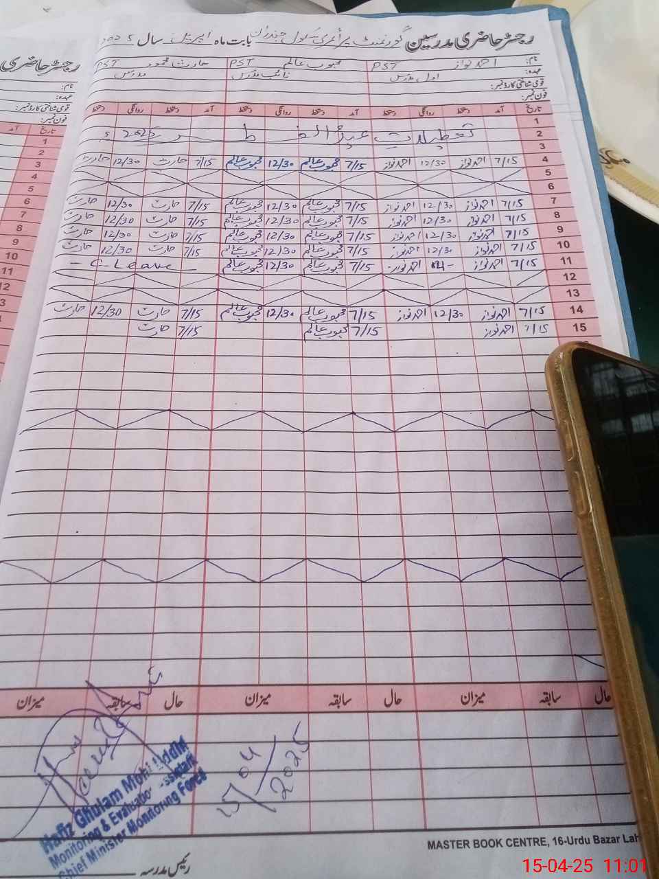 | CNIC | Full Name | Designation | R/C | Absence During Last Calender Month |