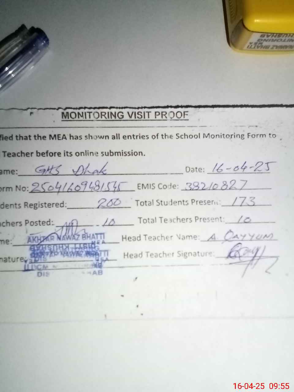 | EMIS Code: 38210827 | Name of School: GHS DHAK | |||