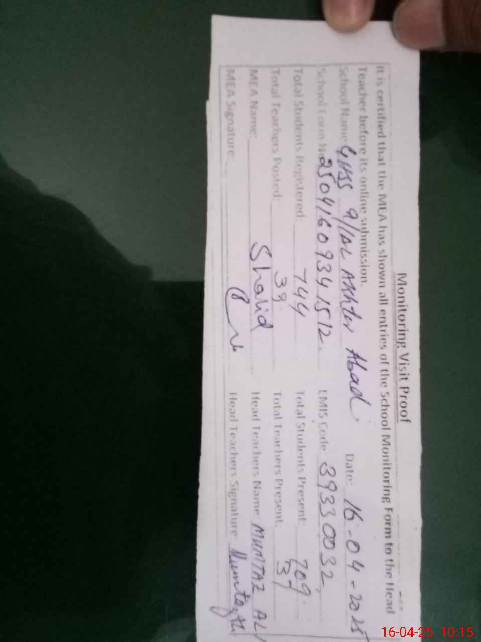 | EMIS Code: 39330032 | Name of School: GHSS CHAK NO. 9/1-AL AKHTAR ABAD | |||