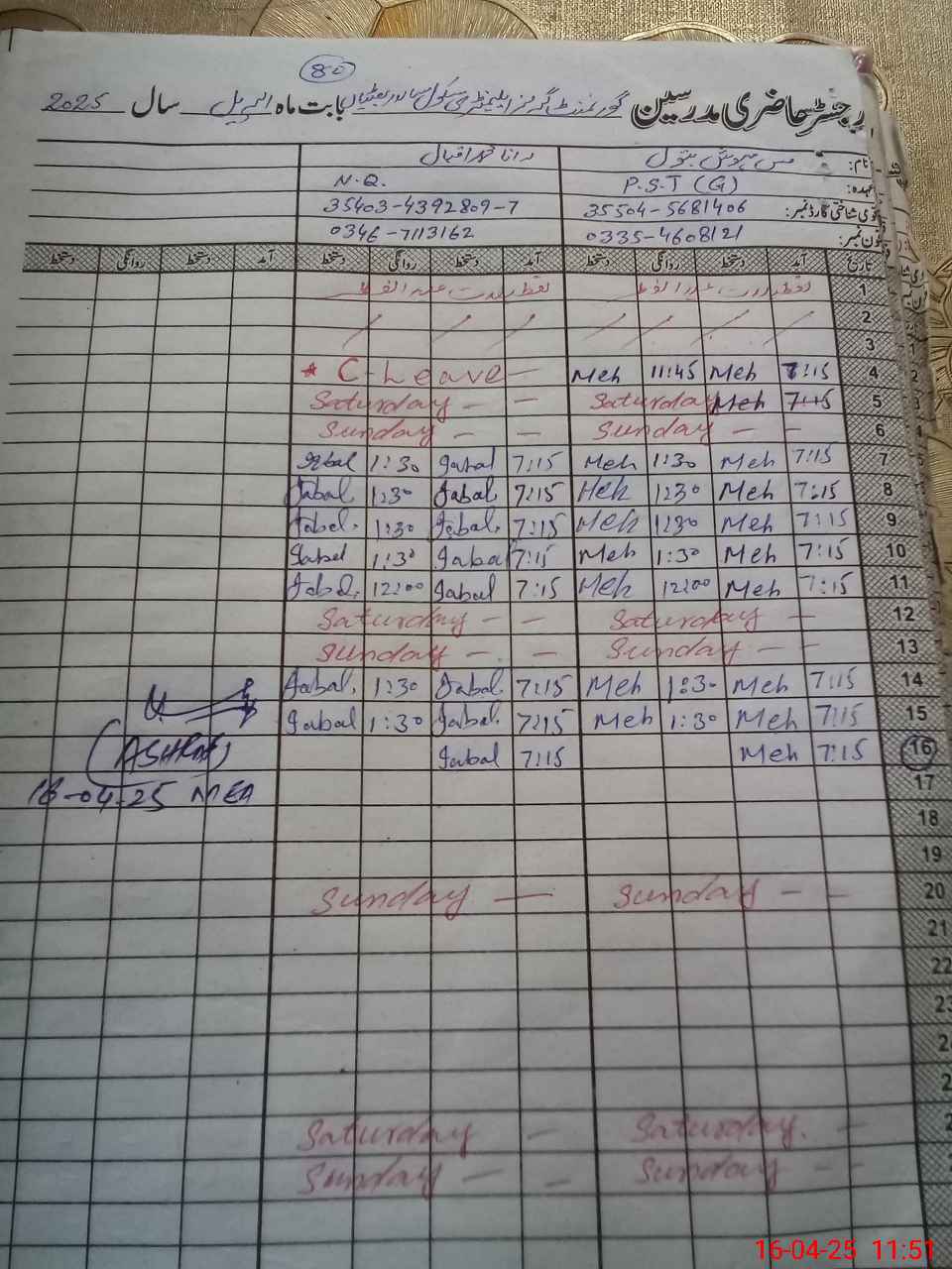 | 35**** | Ta**** Ha**** | SST | Regular | 0 | 0 | 0 | 0 | 0 | 0 | 0 | 0 | 0 | Exam Duty |