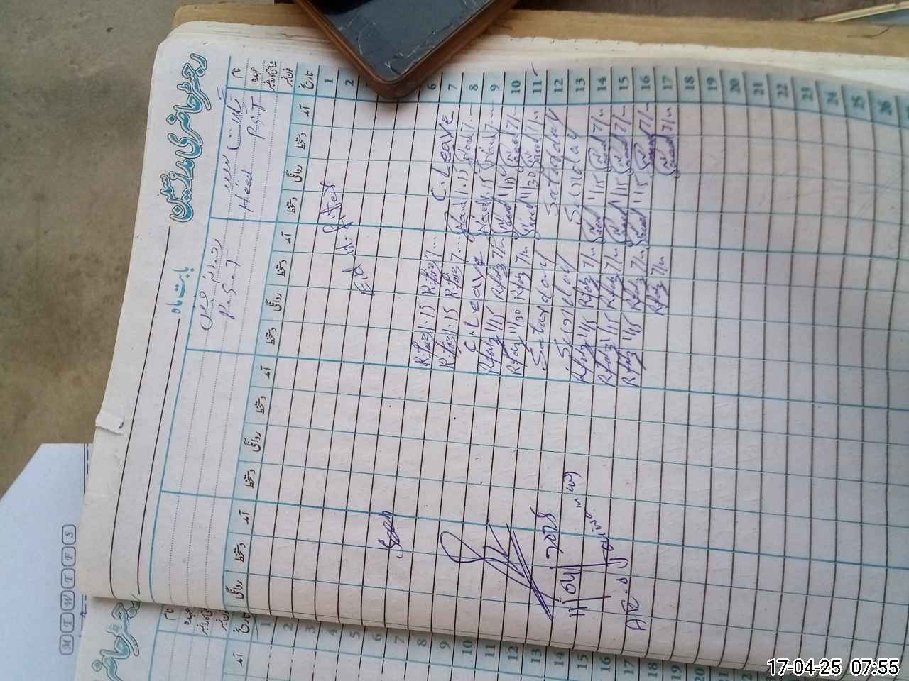 | CNIC | Full Name | Designation | R/C | Absence During Last Calender Month |