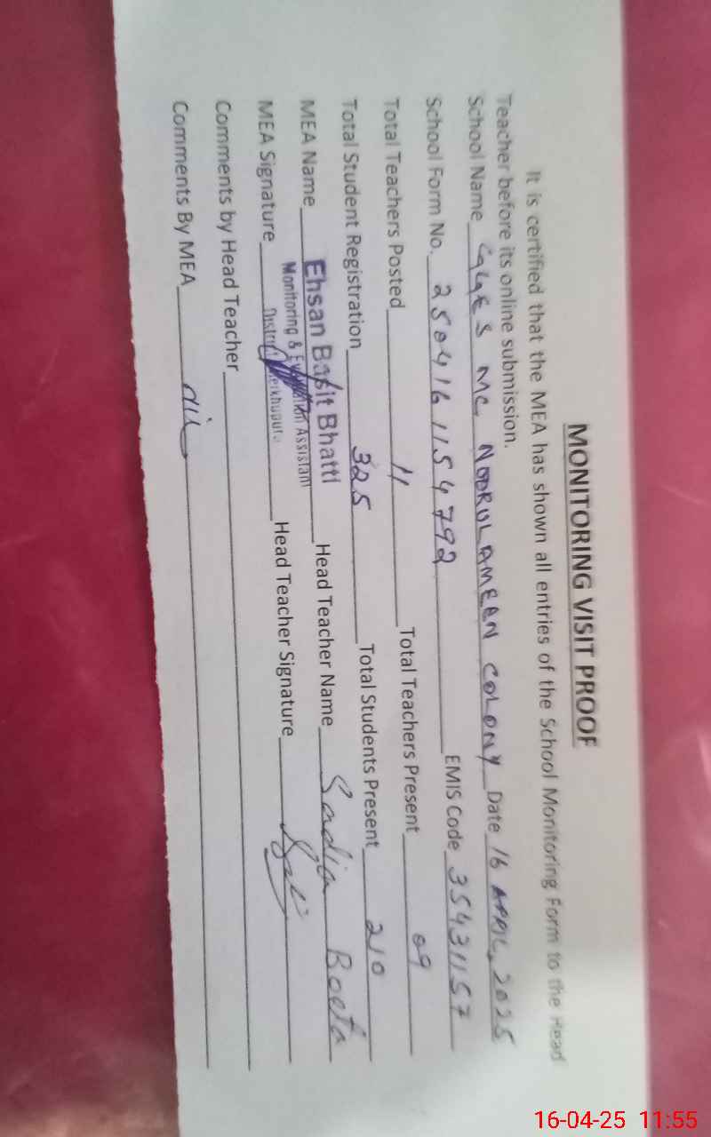 | EMIS Code: 35431157 | Name of School: GGES MC NOOR-UL-AMEEN COLONY | |||
