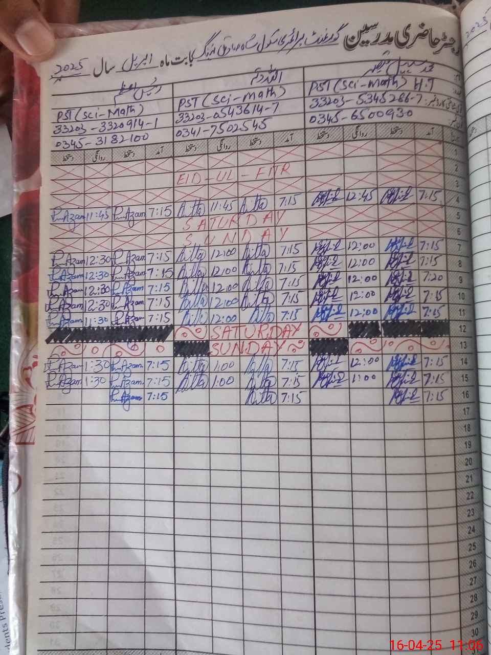 | Name: MU**** SO**** QA**** Designation: (School Headmaster's/Headmistress's) PST Phone/Cell Number: 03**** |
