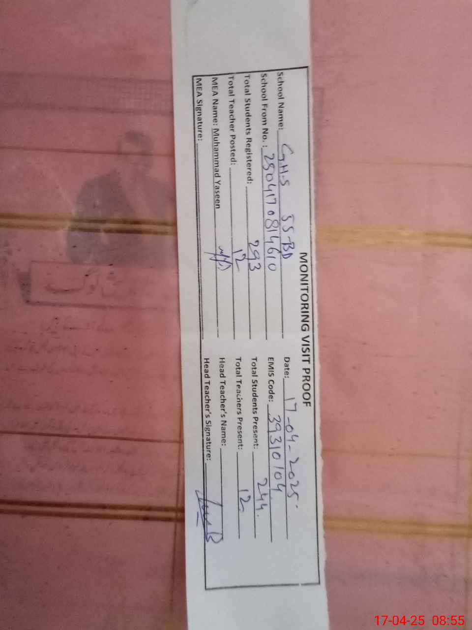 | EMIS Code: 39310104 | Name of School: GHS CHAK NO. 55/BD | |||