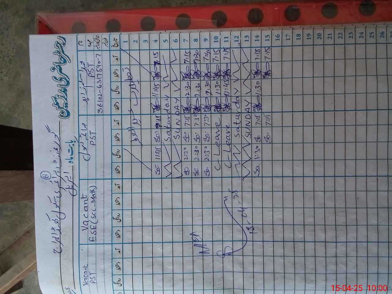 | CNIC | Full Name | Designation | R/C | Absence During Last Calender Month |