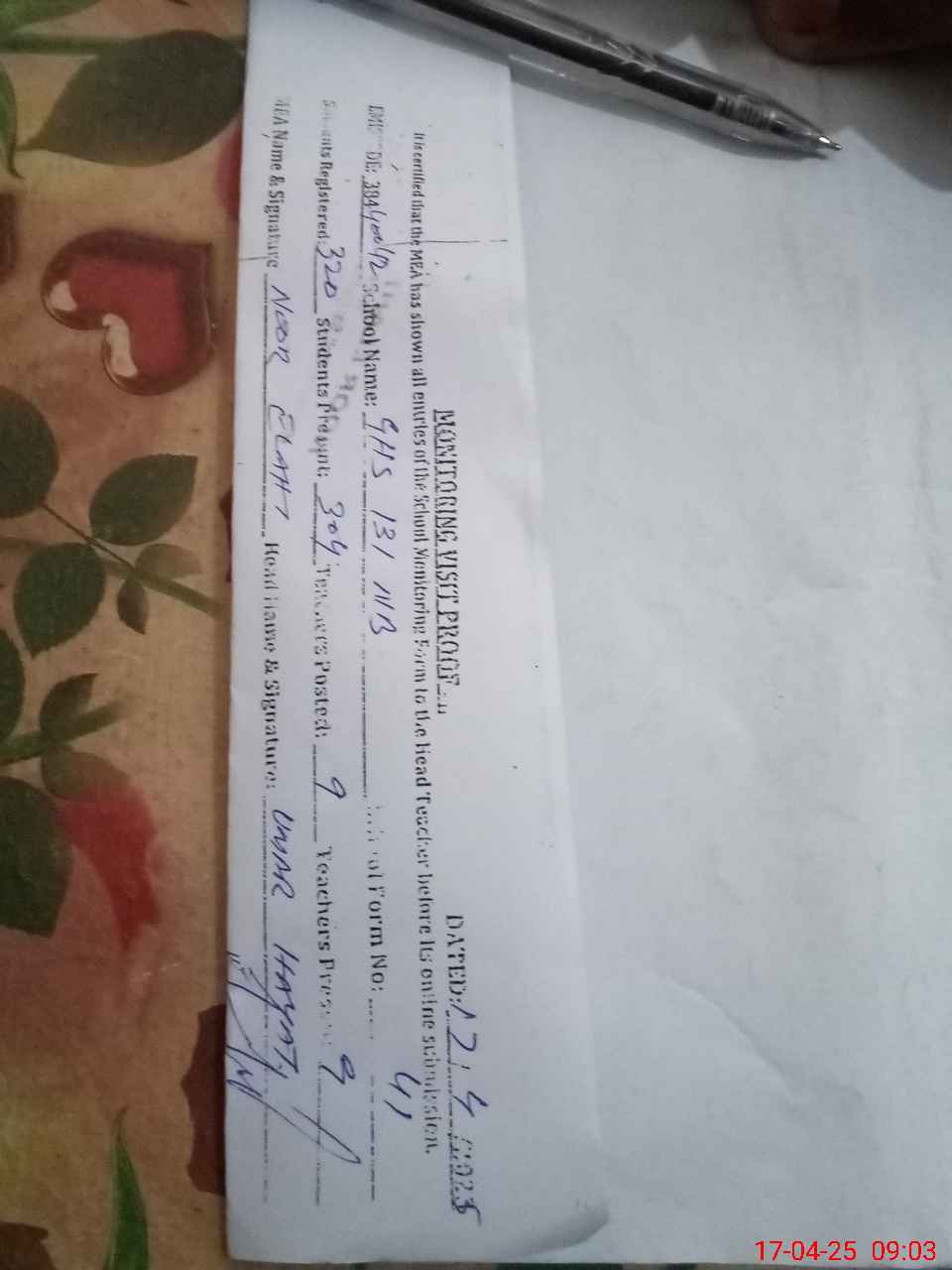 | EMIS Code: 38440042 | Name of School: GHS CHAK NO.131 NB | |||