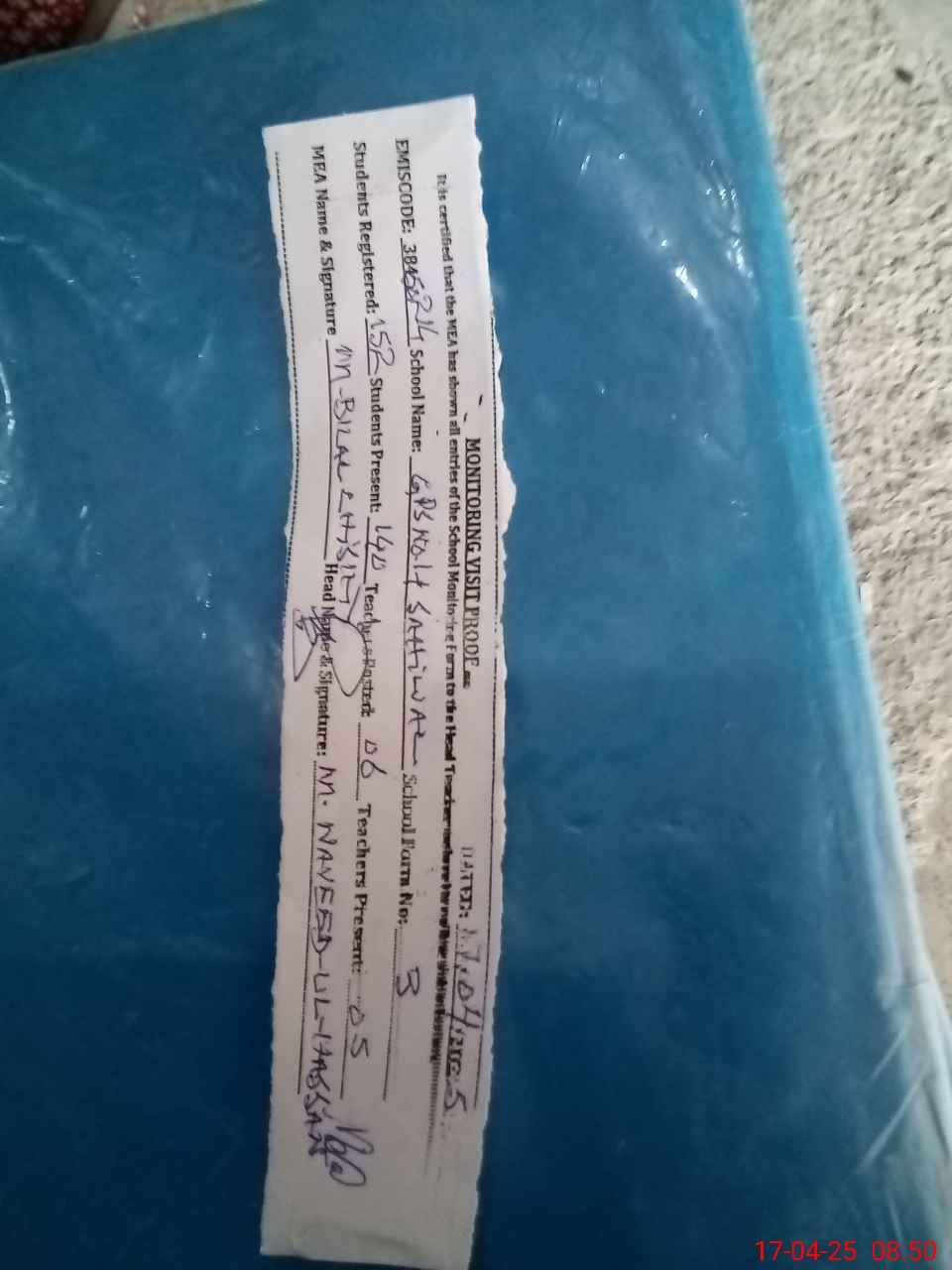 | Attendance Register | Head Teacher | MEA with School | Visit Proof |