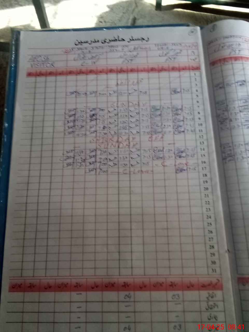 | CNIC | Full Name | Designation | R/C | Absence During Last Calender Month |