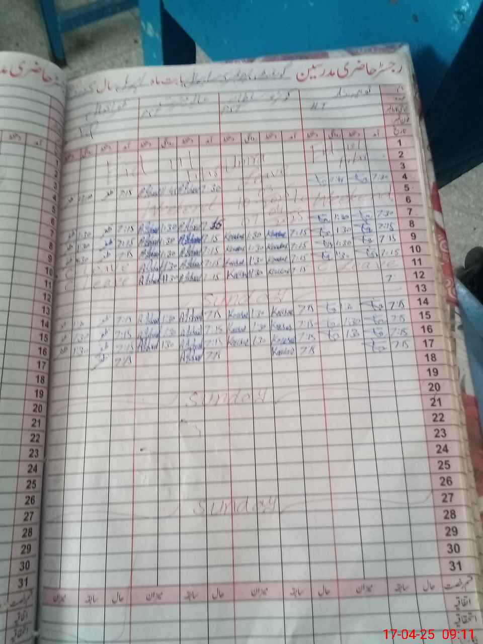 | CNIC | Full Name | Designation | R/C | Absence During Last Calender Month |